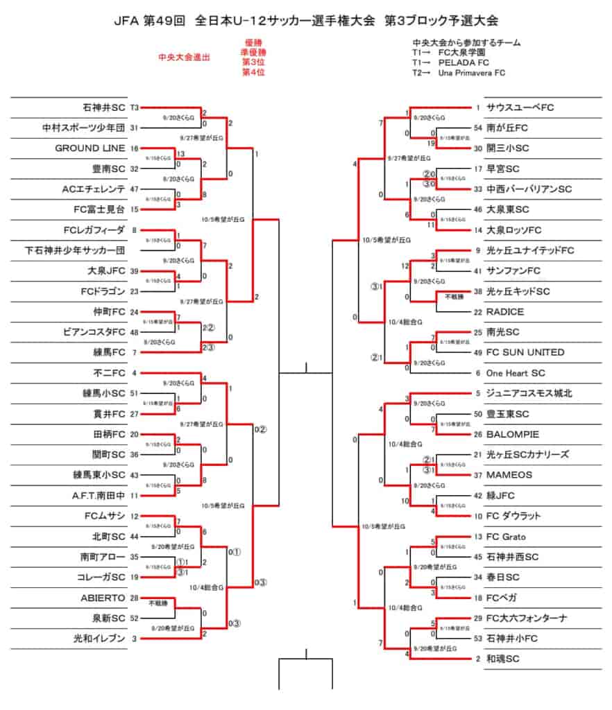 ◎参加資格 T3所属(石神井SC)+U-12前期リーグ参加54チーム(東京都未登録の小竹を除く)→全55チーム