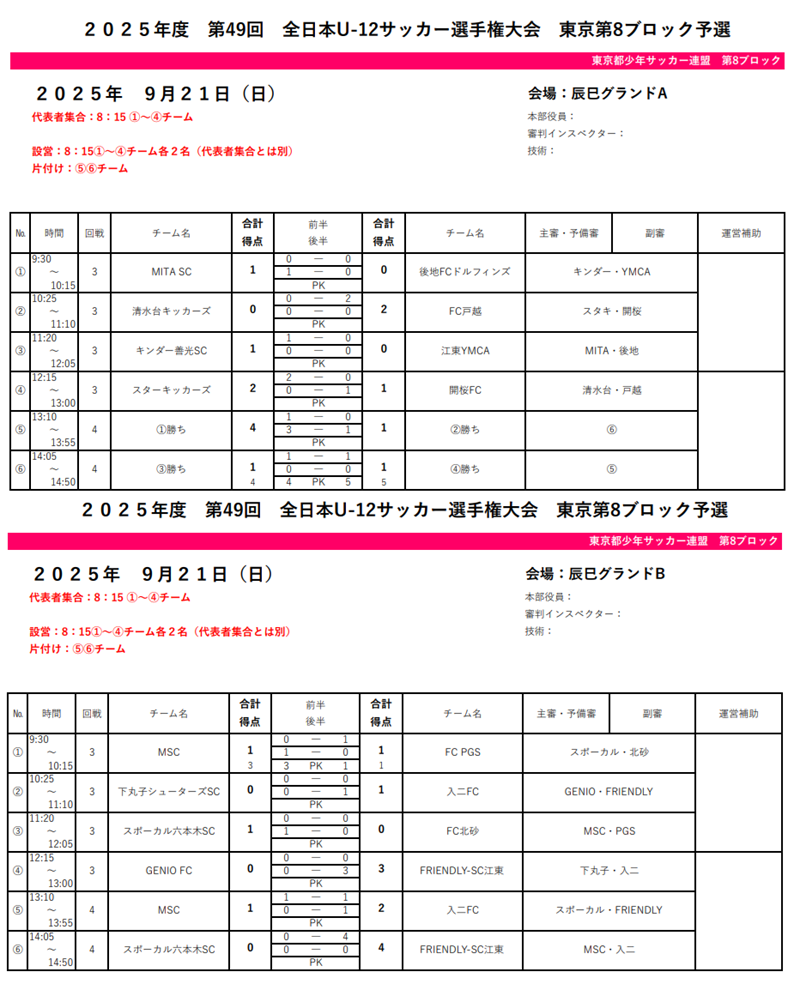 2025年度 JFA第49回全日本U-12サッカー選手権大会 東京大会第8ブロック