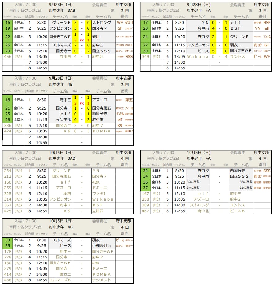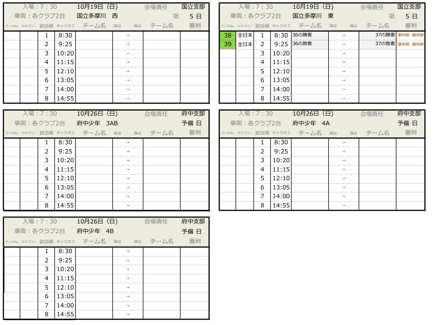 1. 本年度U12リーグ前期終了時点の順位付けにもとづき別紙のとおりの組み合わせにて、トーナメント戦を行う。