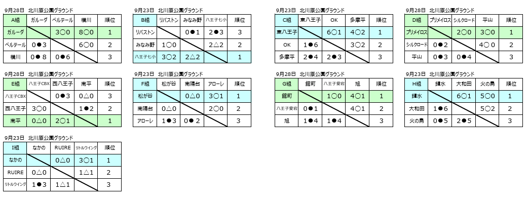 (勝点が同じ場合は、得失点差 → 得点の多い方 → 該当チーム勝ち → 直接対戦の結果 → コイントス)