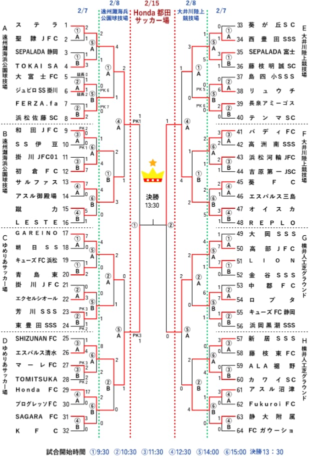 Honda都田サッカー場・大井川陸上競技場・横井人工芝グラウンド・遠州灘海浜公園球技場・ゆめりあサッカー場