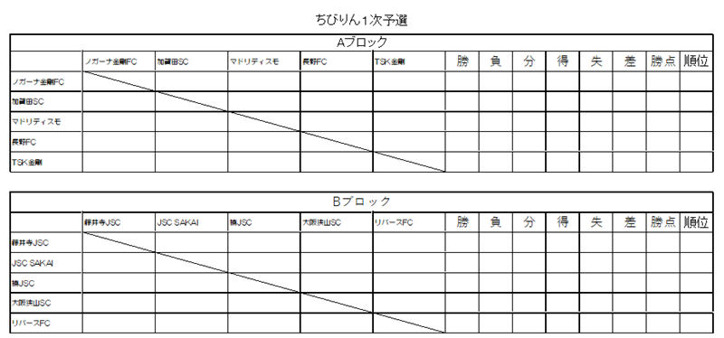 ノガーナ金剛FC、加賀田SC、マドリディスモ、長野FC、TSK金剛