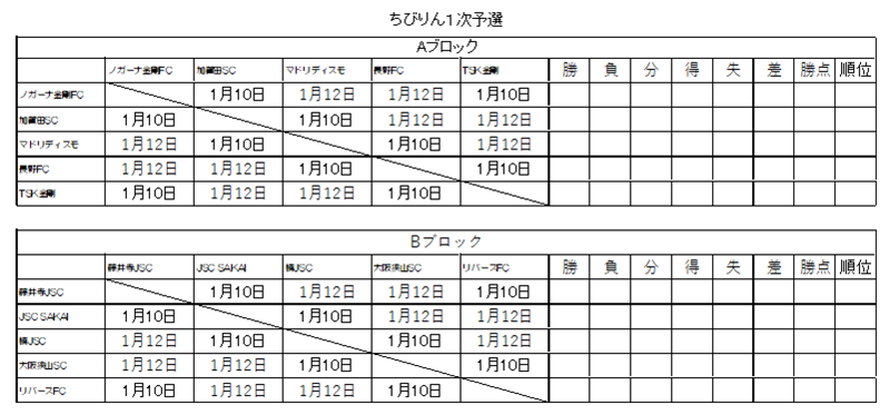 藤井寺JSC、JSC SAKAI、楠JSC、大阪狭山SC、リバースFC
