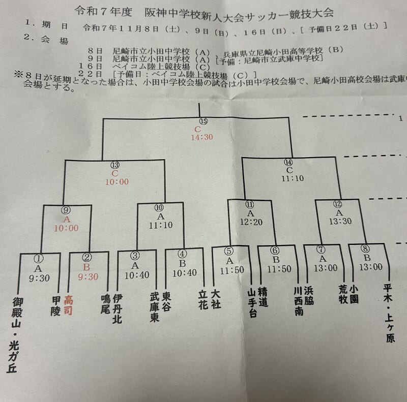 • 上位2チームは12/9.10.16に行われる第43回兵庫県中学校サッカー新人大会に出場する
