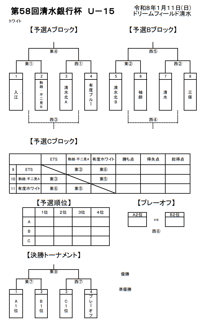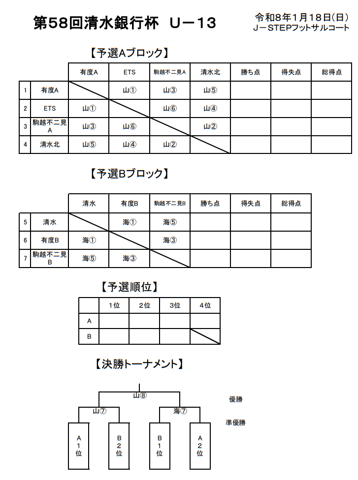 2025年度 第58回清水銀行杯少年少女サッカー大会 中学生の部まとめ(静岡)組み合わせ掲載!1/11,17,18開催 女子の部 組み合わせ募集!