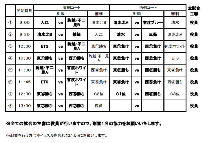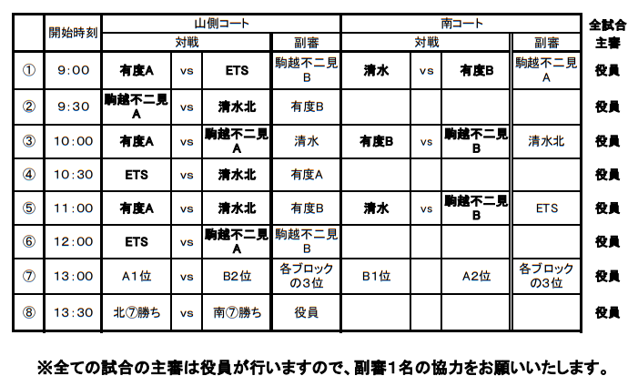 トーナメント、もしくはリーグ戦方式で行う。※参加チーム数により競技方法は変わる。