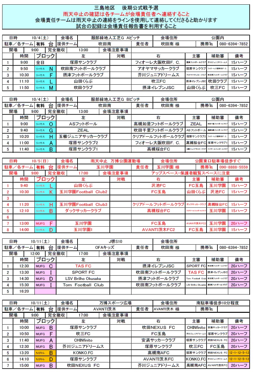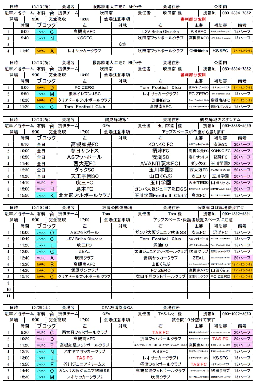 10/4 塚原サンクラブ1 - 高槻桜台FC