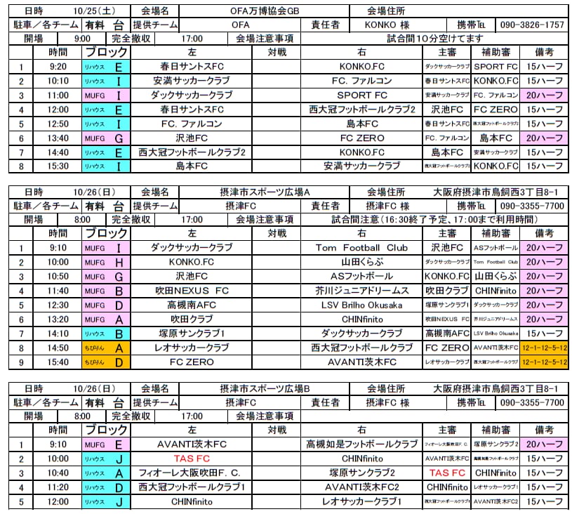 FCZERO、フィオーレ大阪吹田F.C、塚原サンクラブ2