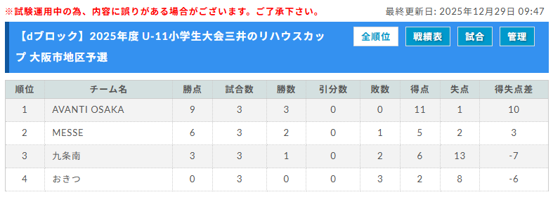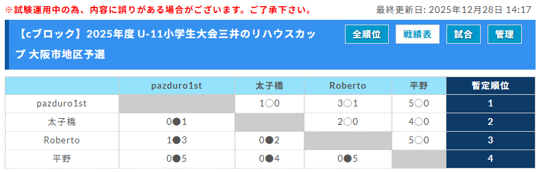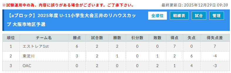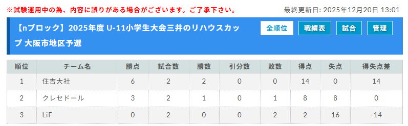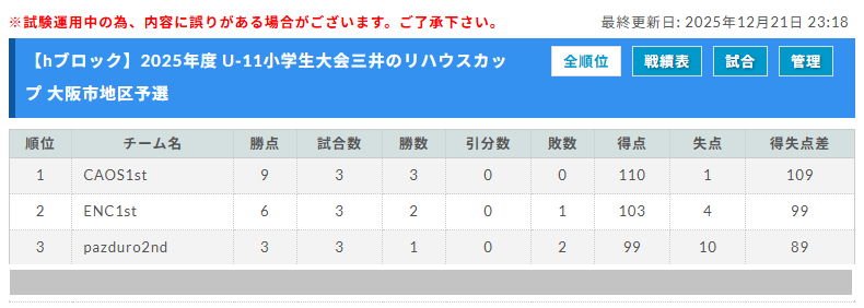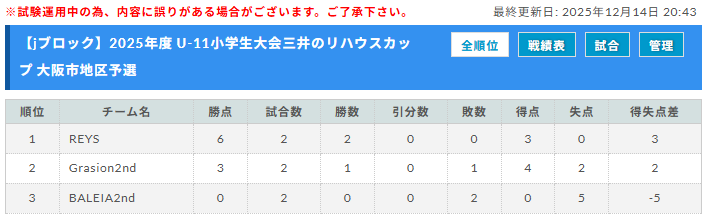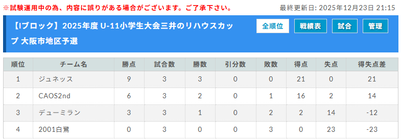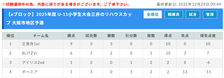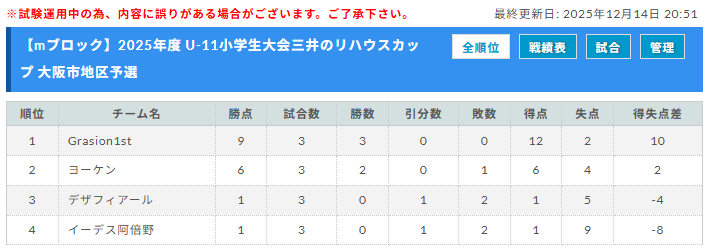 予選リーグ 2025年12月中