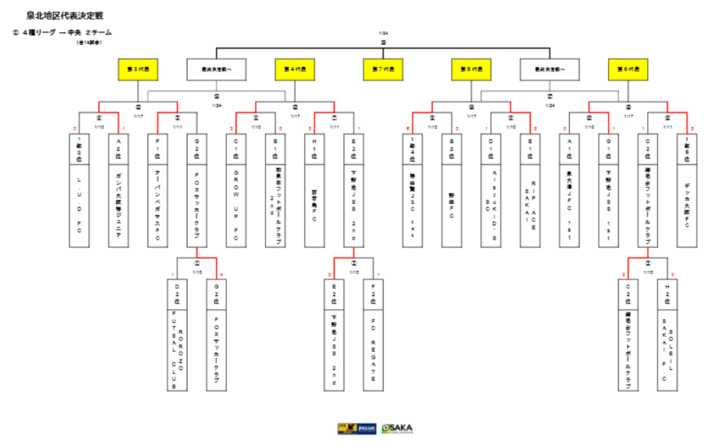 1位:泉大津JFC 1st、2位:ガンバ大阪堺Jr、3位:赤坂台JSC、4位:深井FC、5位:TSK堺SC