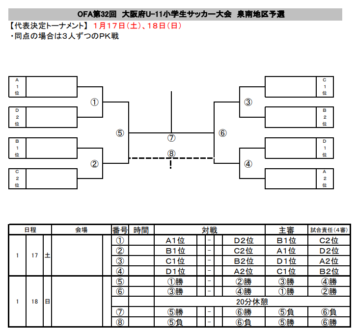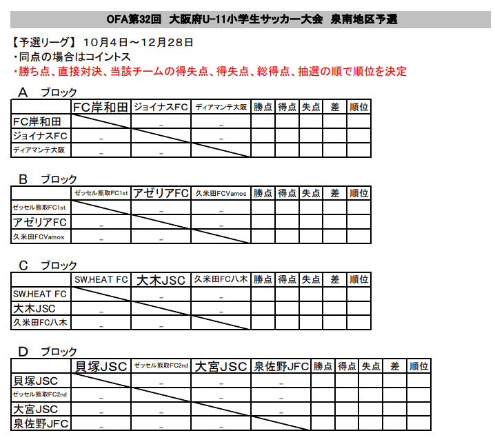貝塚JSC、ゼッセル熊取FC 2nd、大宮JSC、泉佐野JFC