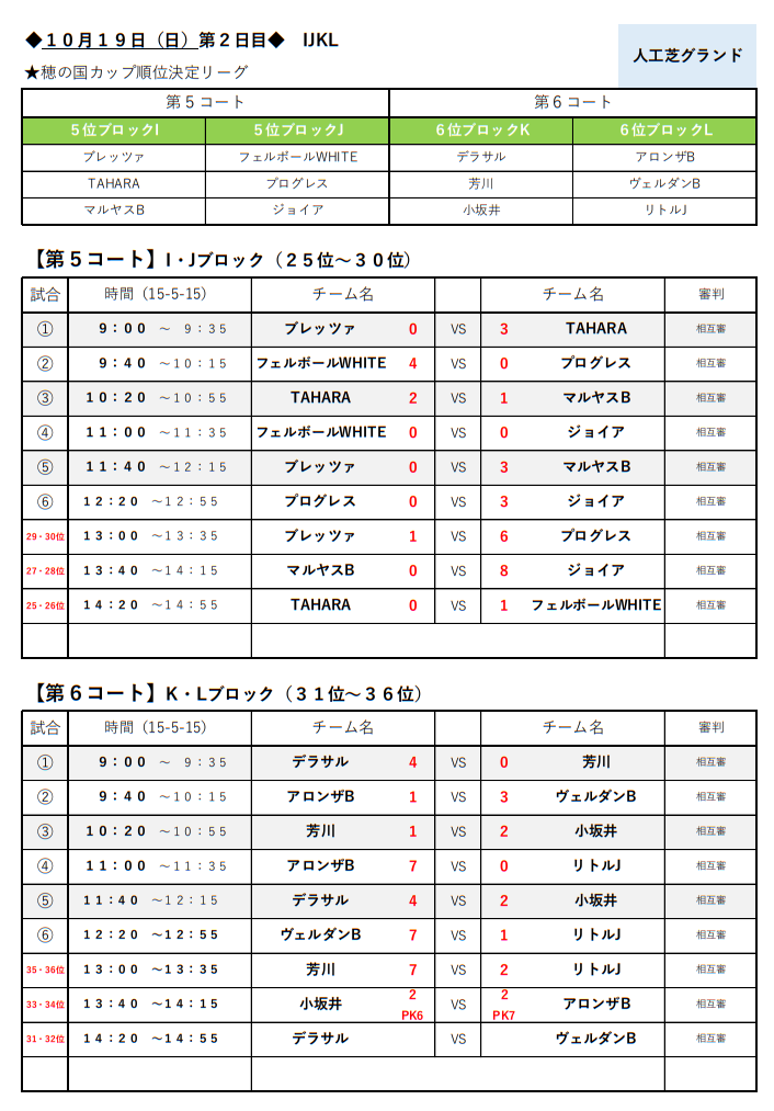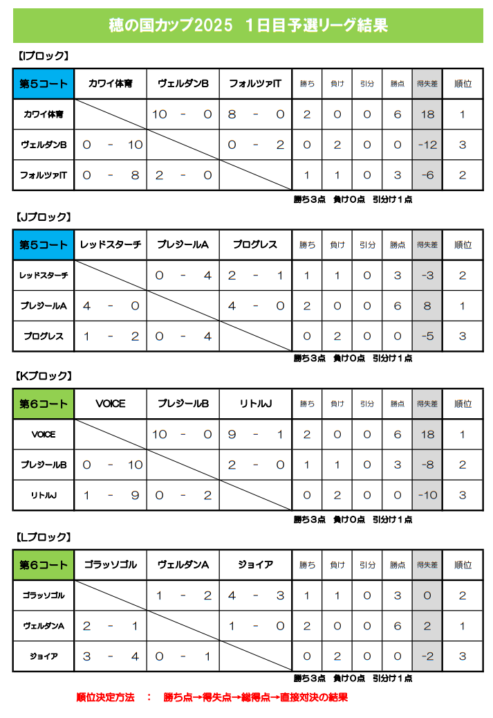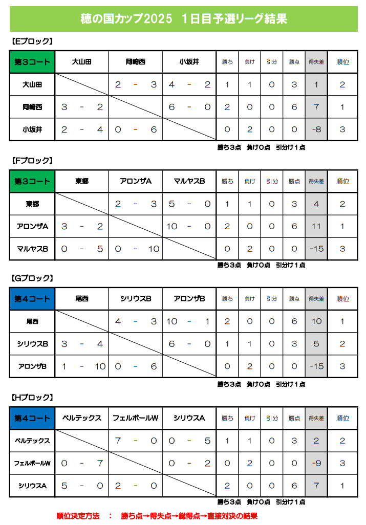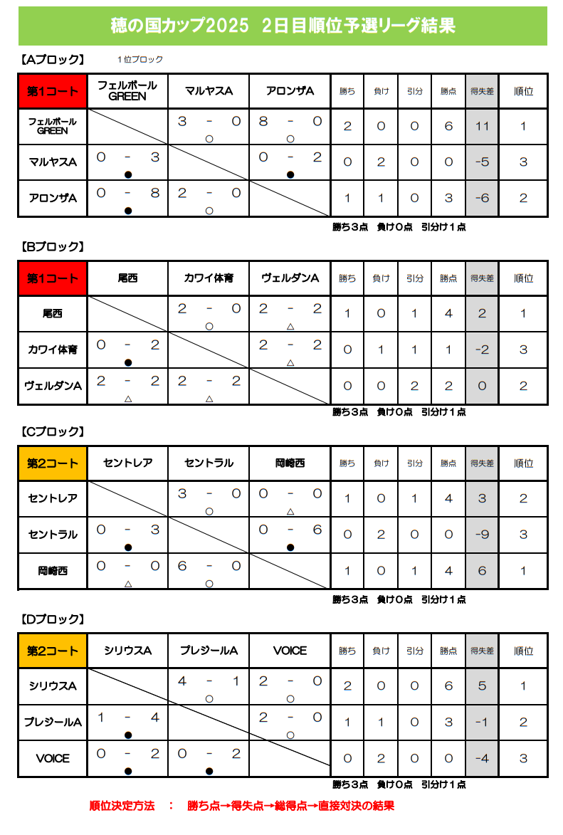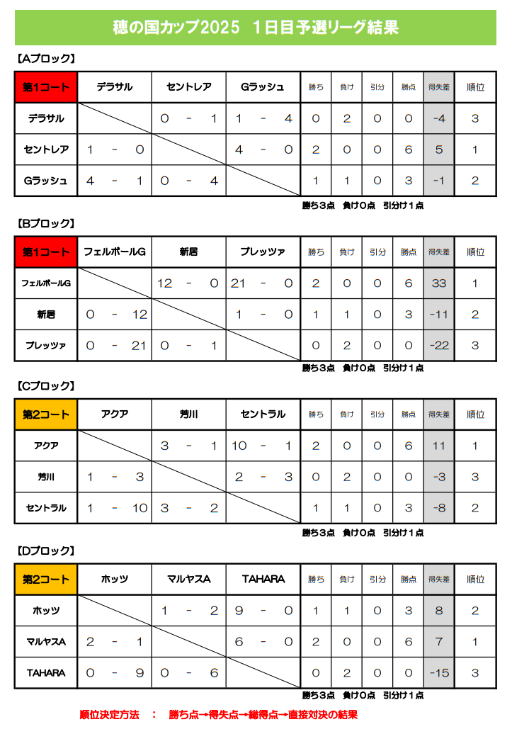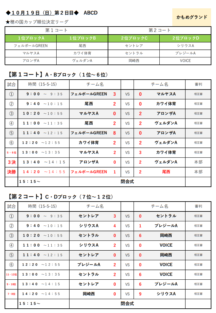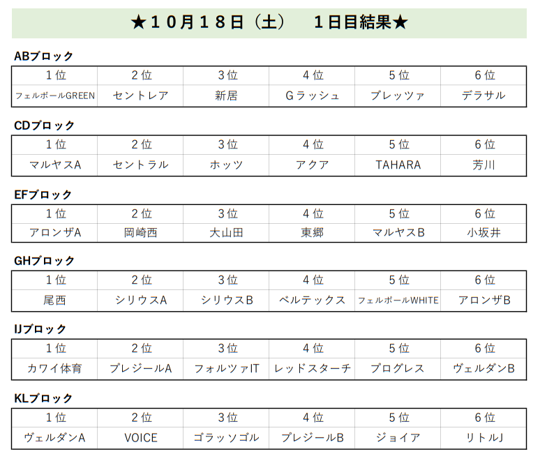 1位A:1位:フェルボールGREEN、 2位:アロンザA、3位:マルヤスA