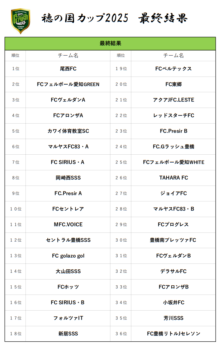 【優勝写真掲載】2024年度 穂の国カップU-9(愛知)優勝はフェルボール愛知!結果更新中!引き続き未判明の情報提供をお待ちしています