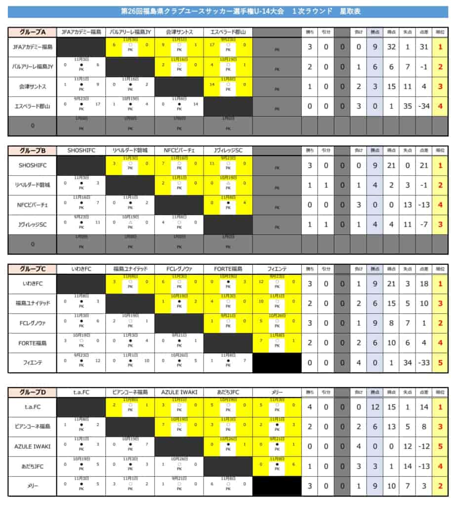 参照元:いわきFC、パルアリーレ福島JY、SHOSHI FC、JFAアカデミー福島