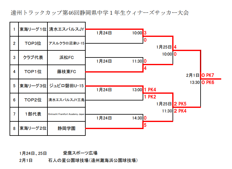 10:00 清水エスパルス(東海L1位) 4-0 藤枝東FC(TOP1位)