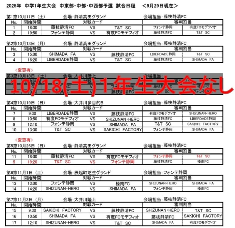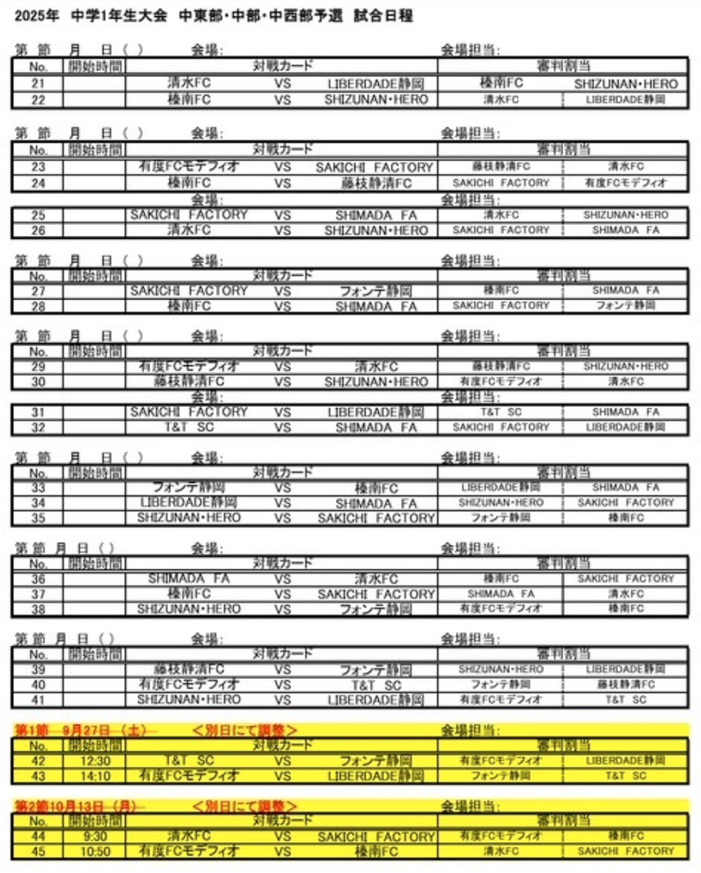 2025年度 第46回静岡県中学1年生大会クラブの部 中部予選(中東部/中部/中西部合同)
