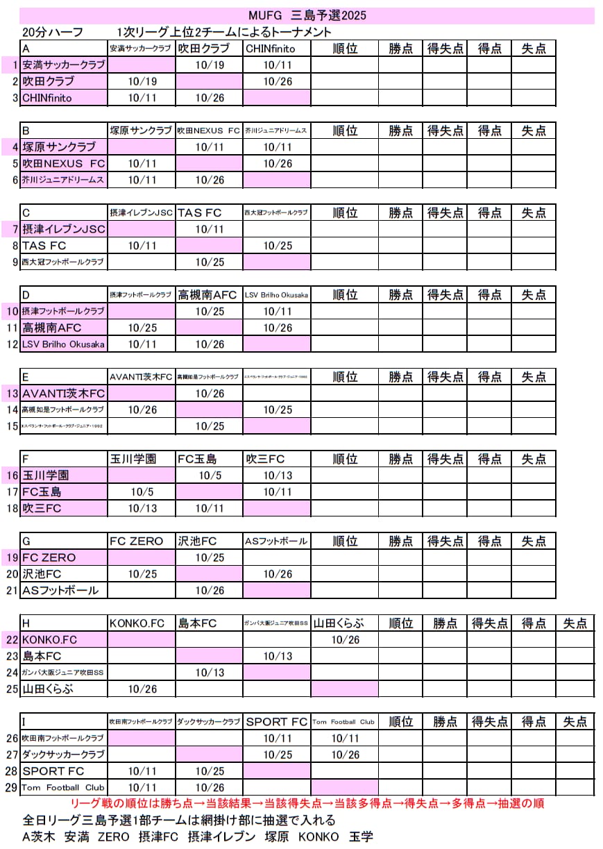 KONKO.FC、島本FC、ガンバ大阪ジュニア吹田SS、山田くらぶ