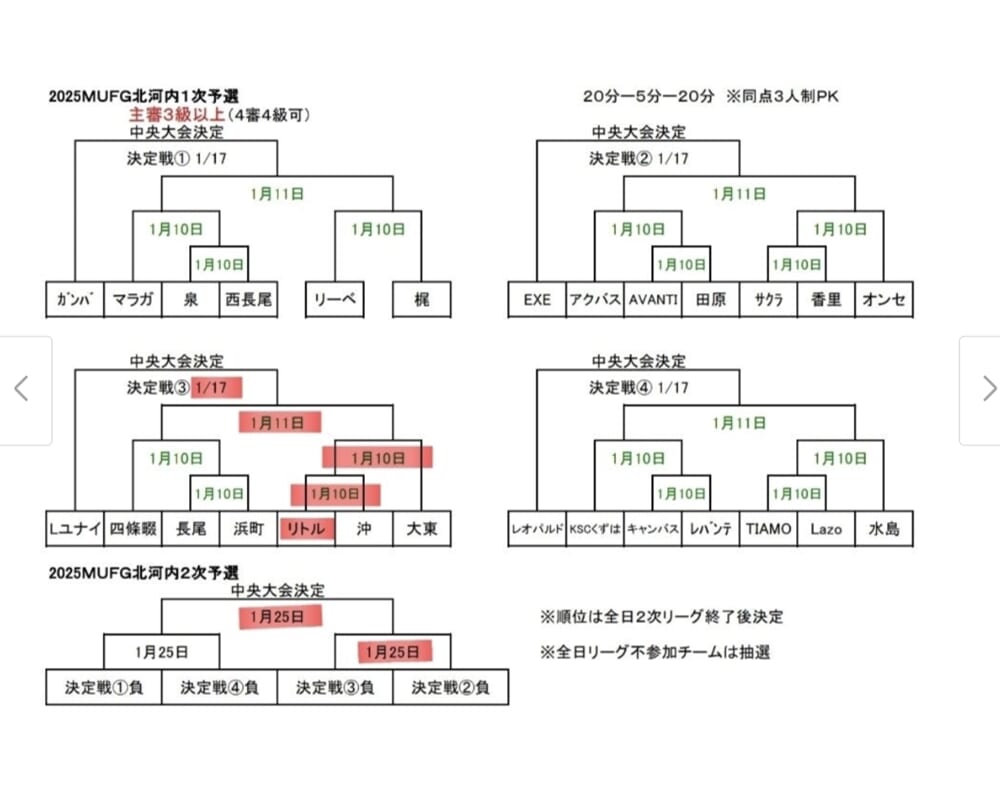 参照元:FCTIAMO、FCONCE、AVANTIHIRAKATA、GyoseiFC、GW大東、長尾SC、梶FC、リトルFC