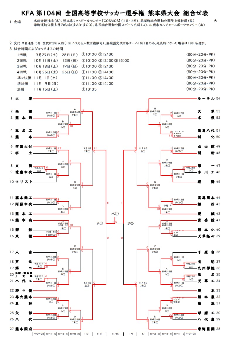 3. 熊本西4-3南稜、学園大付12-1宇土、文徳8-0マリスト、鹿本商工8-0阿蘇中央、東稜1-0御船、済々黌3-2八代工、城北11-0高専八代、翔陽3-2第一、熊本北21-0天草拓心、有明7-0千原台、鹿本3-0玉名、熊本農7-0菊池