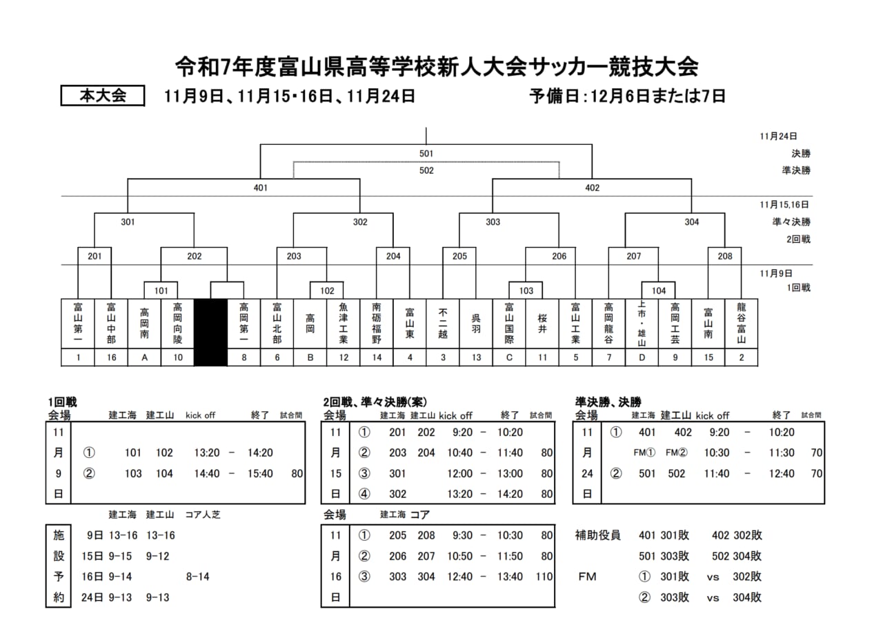 2回戦 ・準々決勝 : 2025年11月15日(土)、11月16日(日)