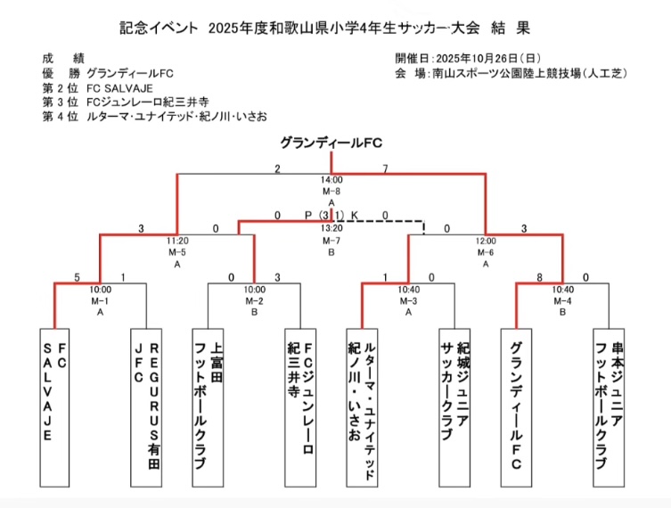 2025年度 和歌山県小学4年生サッカー大会 結果
