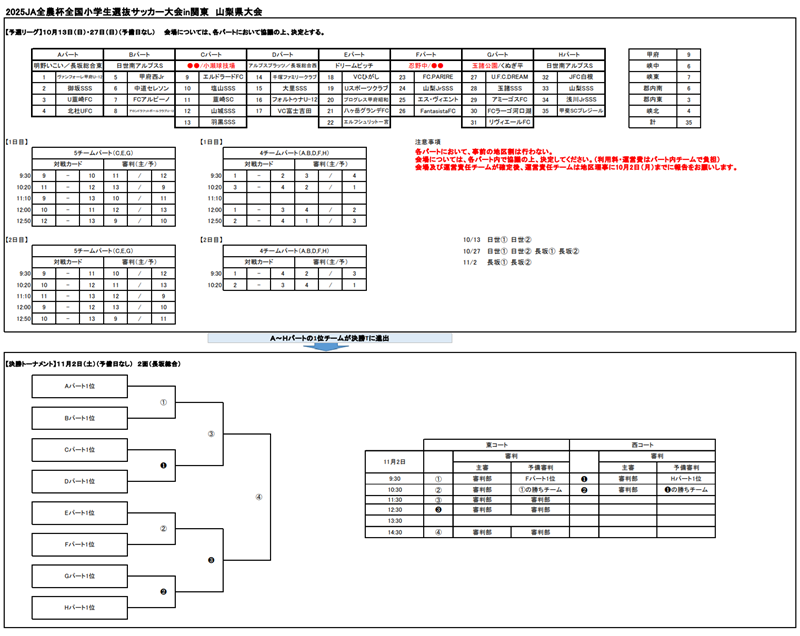 ※ 試合スケジュールについては、別添試合スケジュールの通りとし、各チームの試合順の変更は認めないものとする。