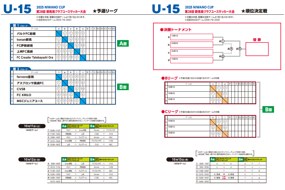 U-13…60分(ハーフタイム7分) ※初日のみ50分ゲーム