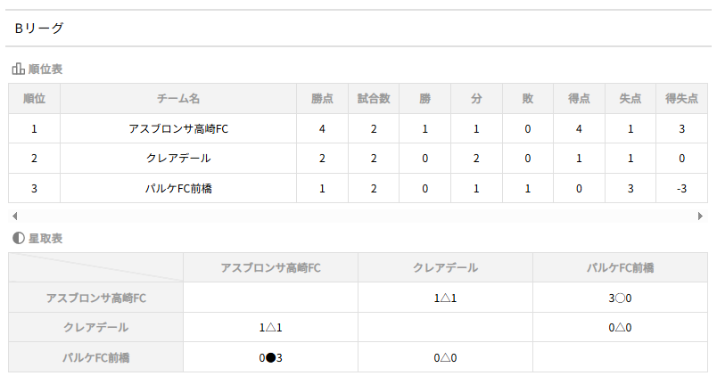 1位:アスブロンサ高崎FC、2位:クレアデール、3位:パルケFC前橋
