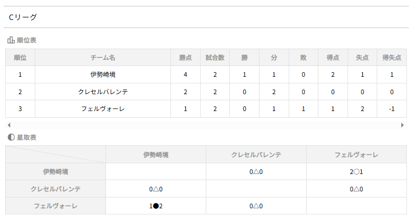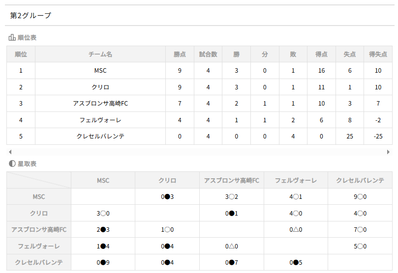 1.勝ち点(勝3点·分1点·負0点)並びに得失点差の多いチーム