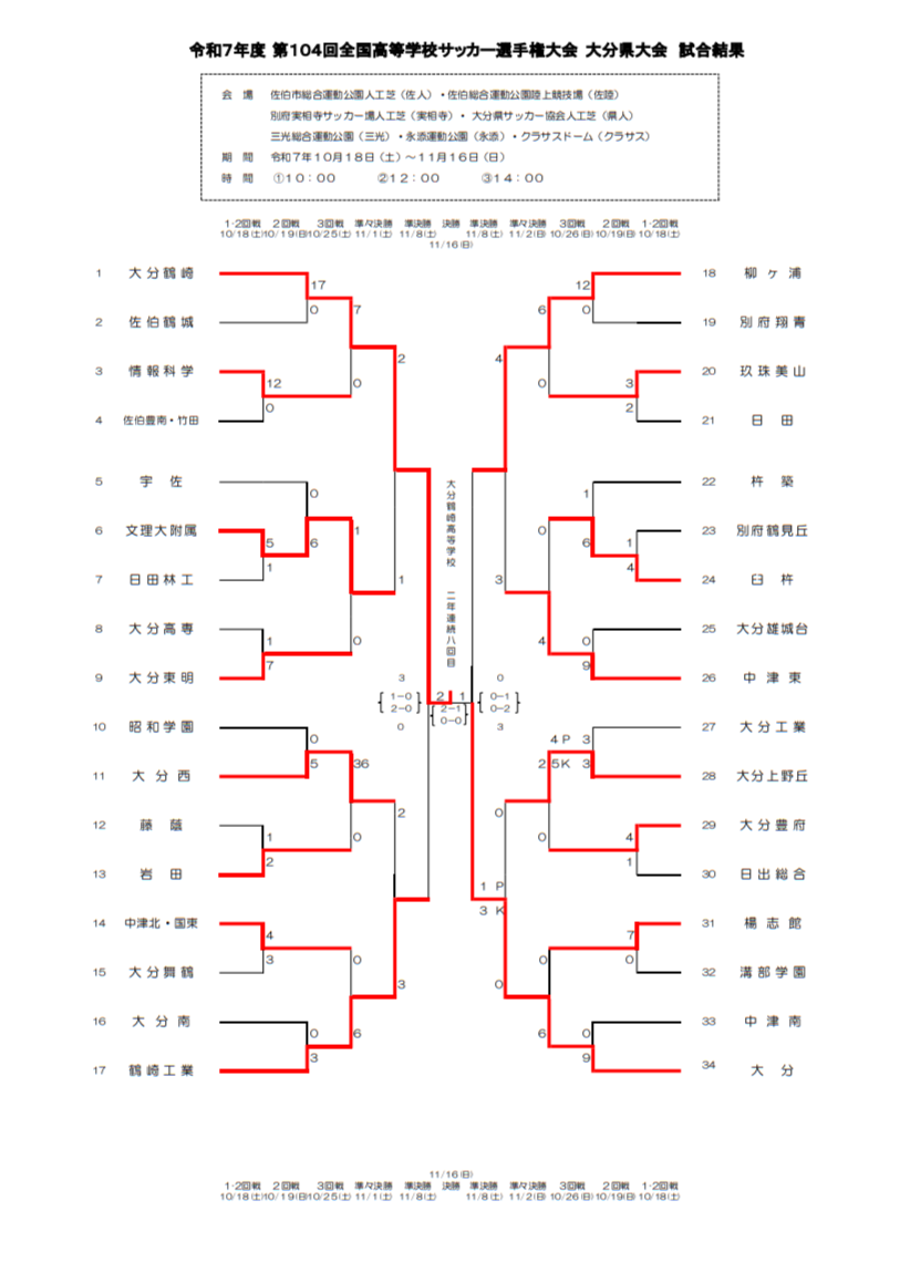 2025年度 第104回全国高校サッカー選手権 大分県大会 優勝は大分鶴崎高校!2年連続8回目!最終結果表掲載