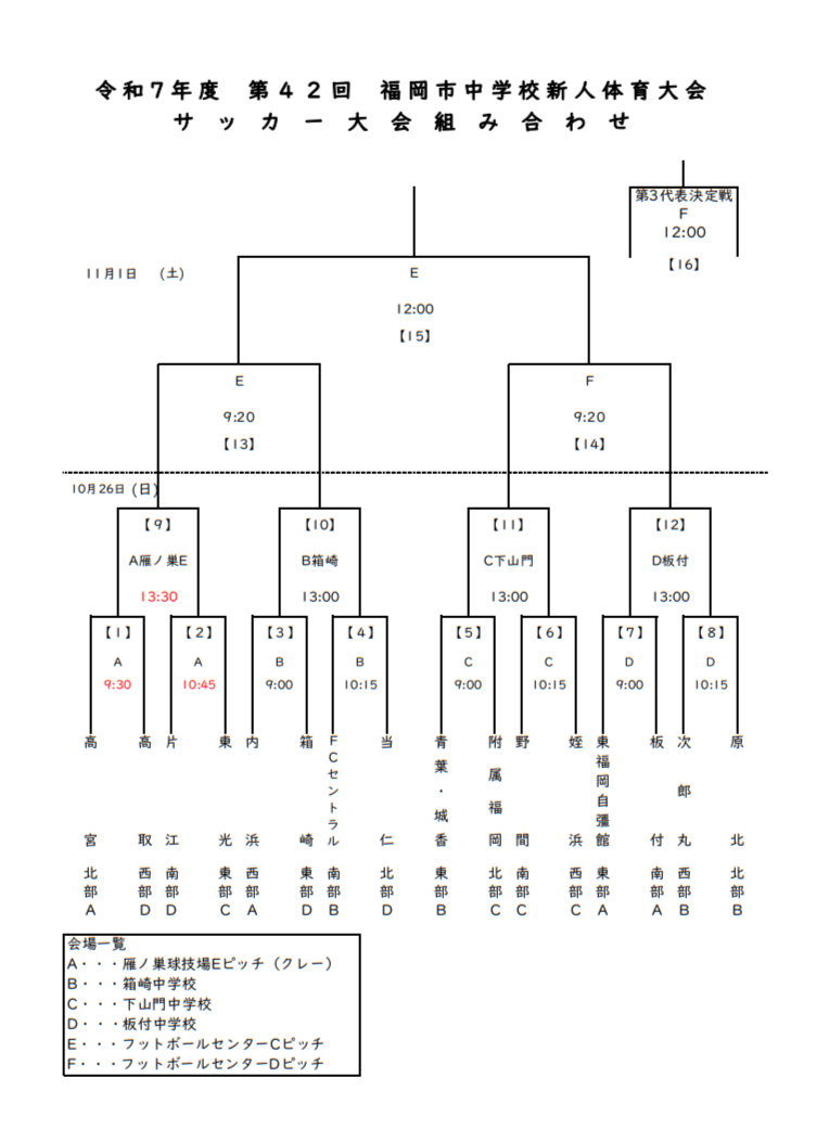 福岡市中学校新人サッカー大会の東部Cパートの組合せありがとうございます!