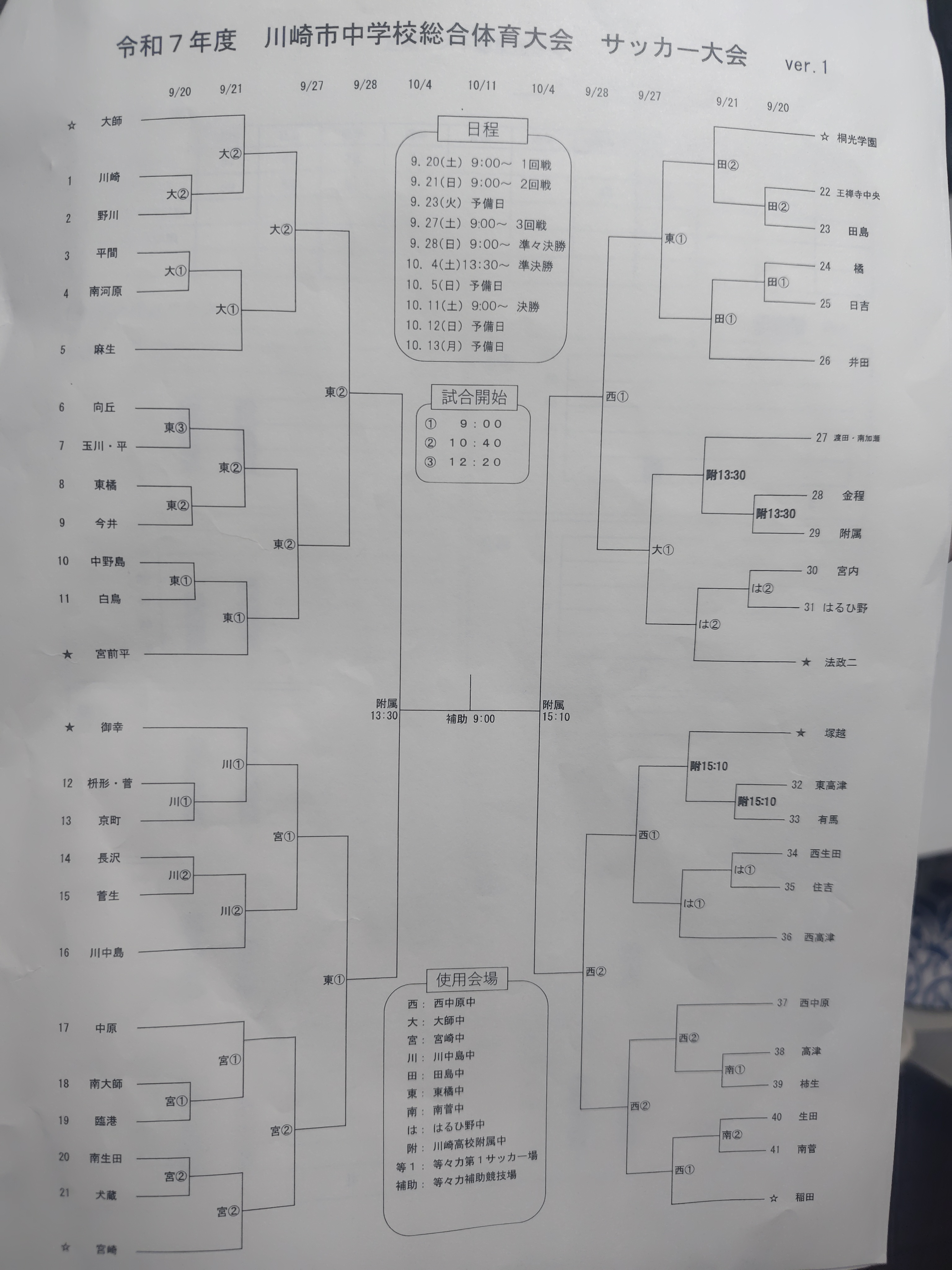 川崎市中学校総合体育大会の組合せ情報をお寄せいただき、ありがとうございます!