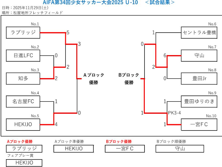 【優秀選手掲載】2024年度 AIFA 第33回少女サッカー大会U-10(愛知)Aブロックはセントラル豊橋、Bブロックはラブリッジ名古屋が優勝!