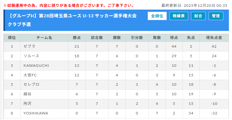 ・本大会の成績は埼玉県クラブユースU-14サッカー選手権大会に反映される。