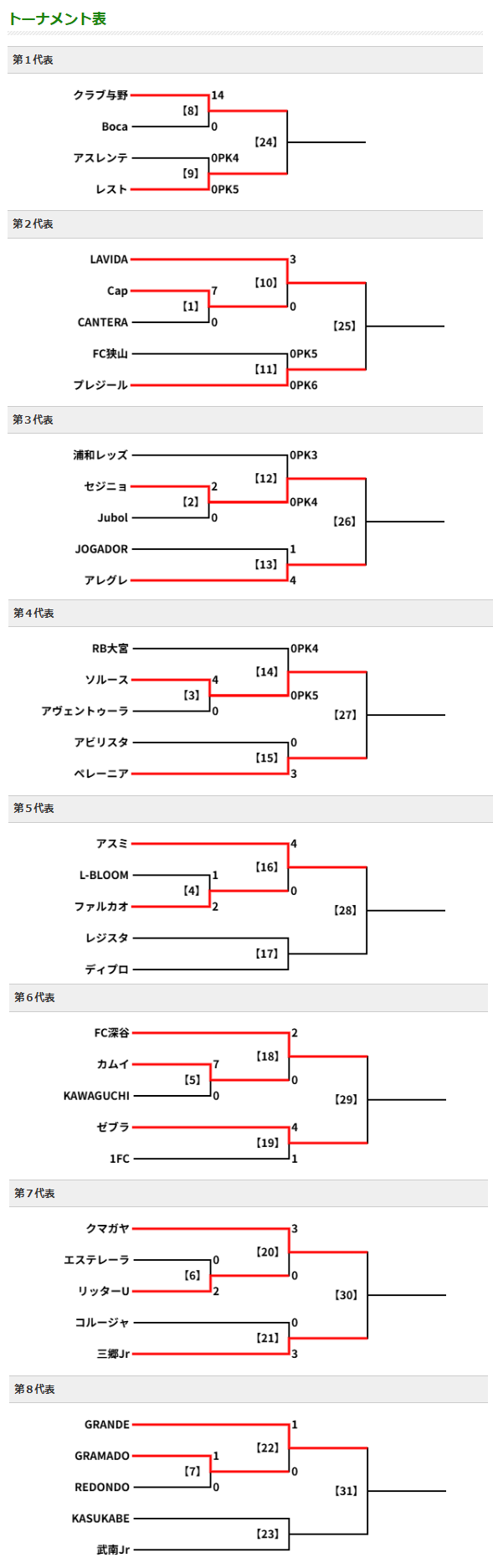 1位:アスレンテ、IRUMA(予備予選C2位)、REDONDO、レジェンド熊谷、プロスペリダージ、エステレーラ、Future