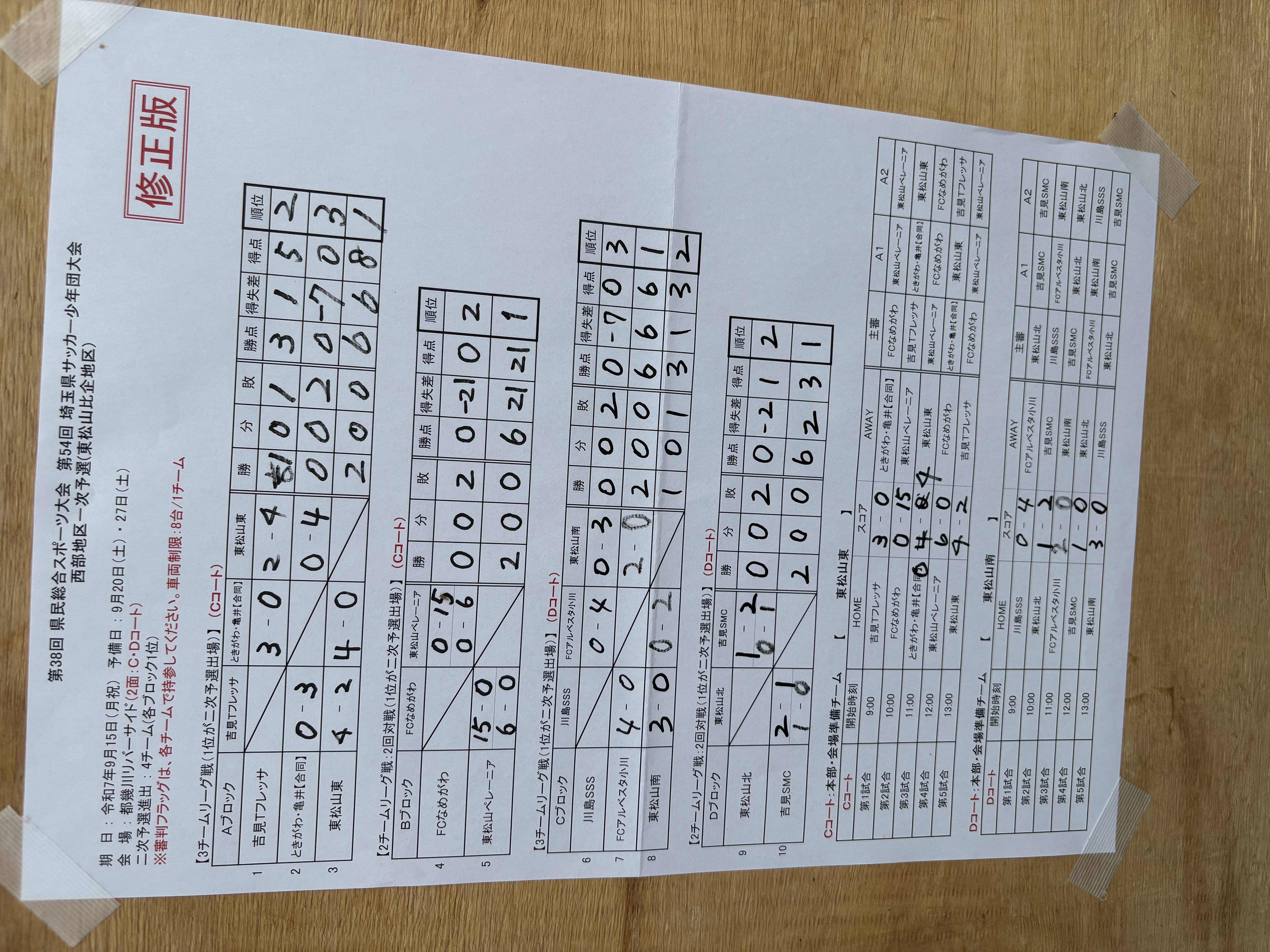第38回 県民総合スポーツ大会 第54回 埼玉県サッカー少年団大会西部地区一次予選大会の東松山比企地区の結果です。
