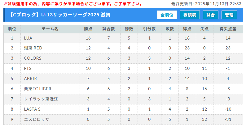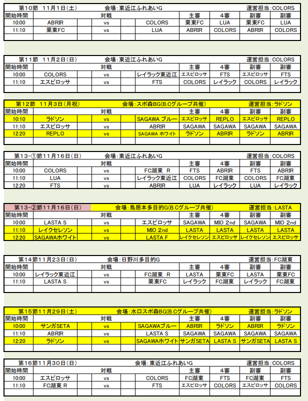 LUA FOOTBALL CLUB、FC湖東 RED、COLORS SHIGA U-15、FTS FOOTBALL CLUB、ABRIR FC、栗東FC LIBER Jr.Y、レイラック滋賀U-15東近江、LASTA 滋賀 S、エスピロッサFC