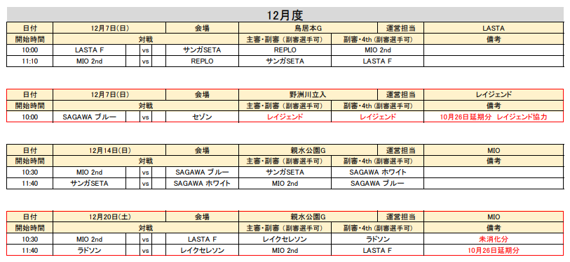 各リーグの1位は2026年1月31日(土)ビックレイクAで行われる優勝決定戦に出場する。