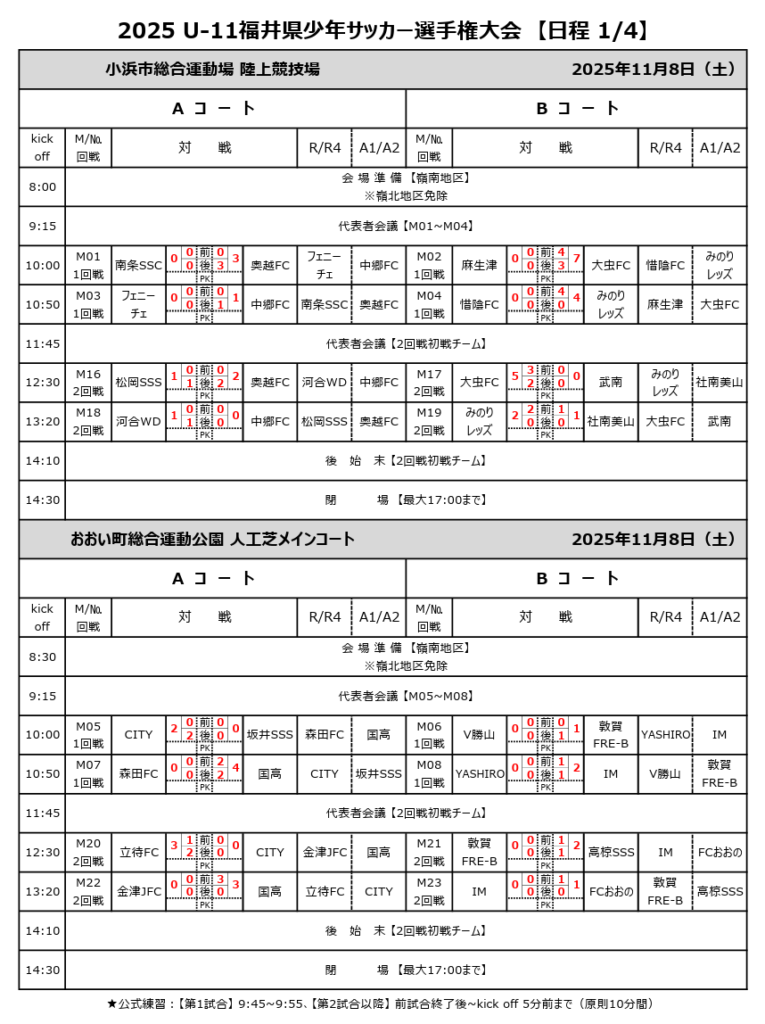 <1、2回戦> 11月 9日(日) ・・・ おおい運動公園人工芝(人芝2面)