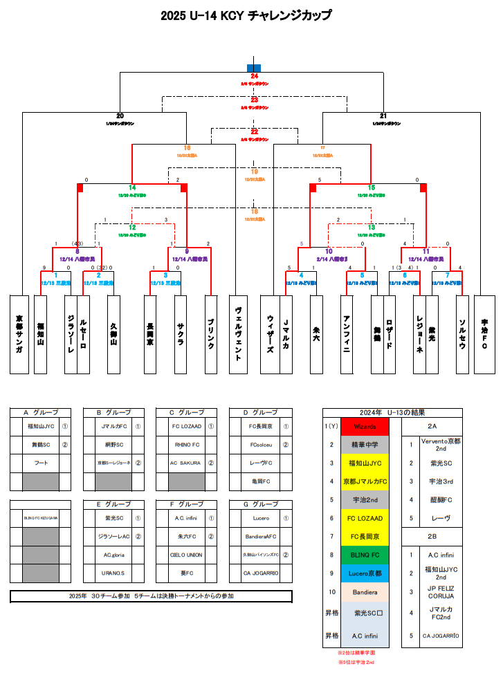 予選リーグ組合せ・リーグ戦表 各グループ上位2チームが決勝トーナメント進出