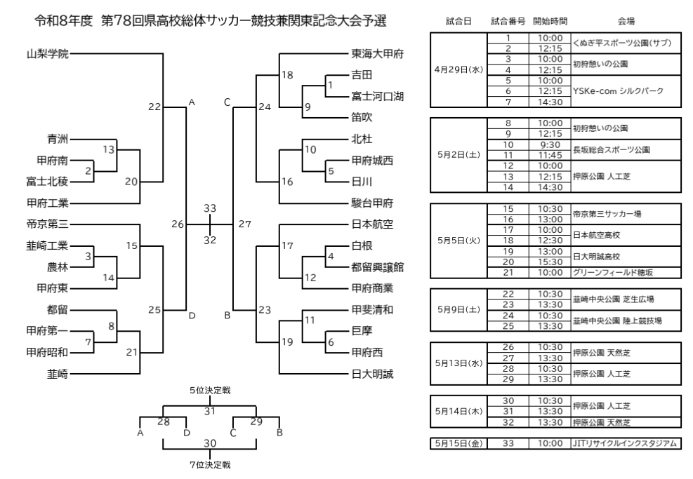2026年度 第78回山梨県高校総体サッカー競技 兼 関東記念大会予選