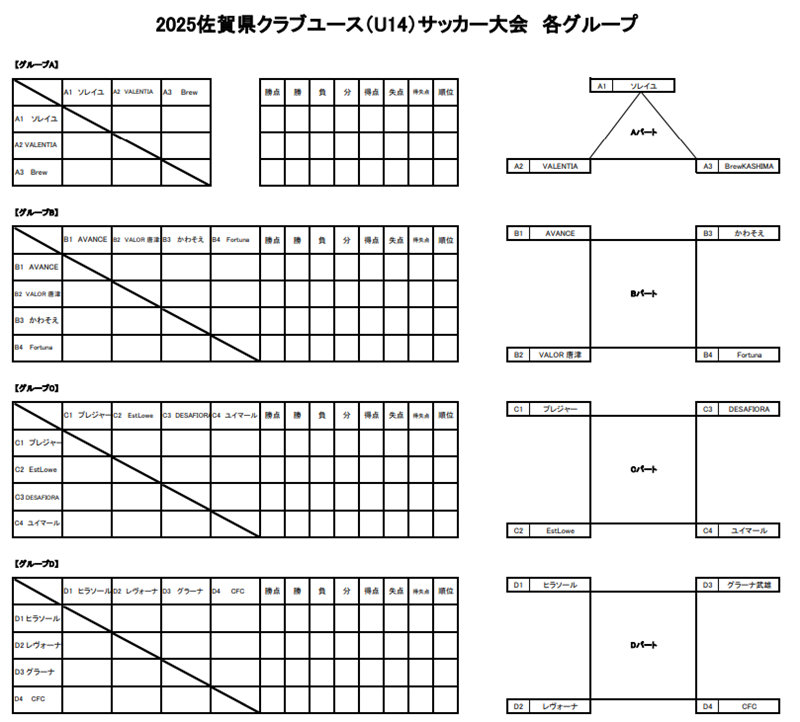 グループB:AVANCE、VALOR 唐津、かわそえ、Fortuna