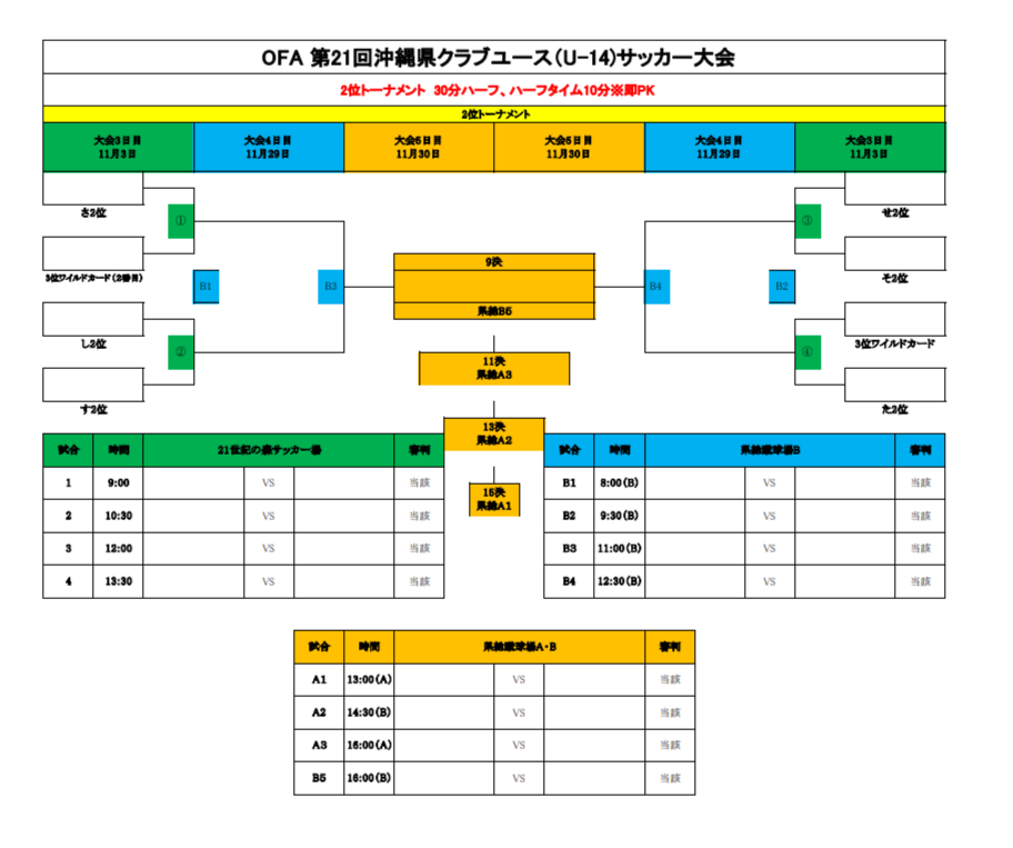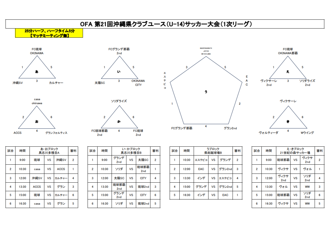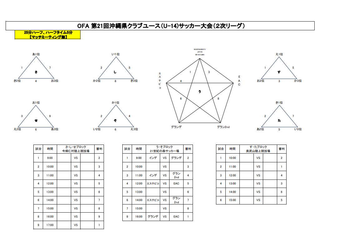 FC琉球OKINAWA 2nd(か1位)、FC GRANDE那覇 2nd(い2位)、ヴィクサーレ沖縄FC 2nd、(え3位)