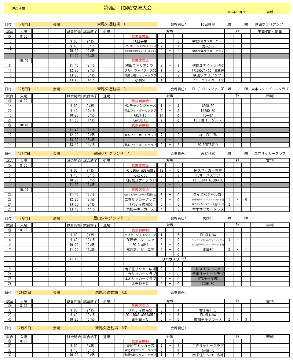 2025年度 第9回TOMAS東京都U-9サッカー交流大会 第1ブロック