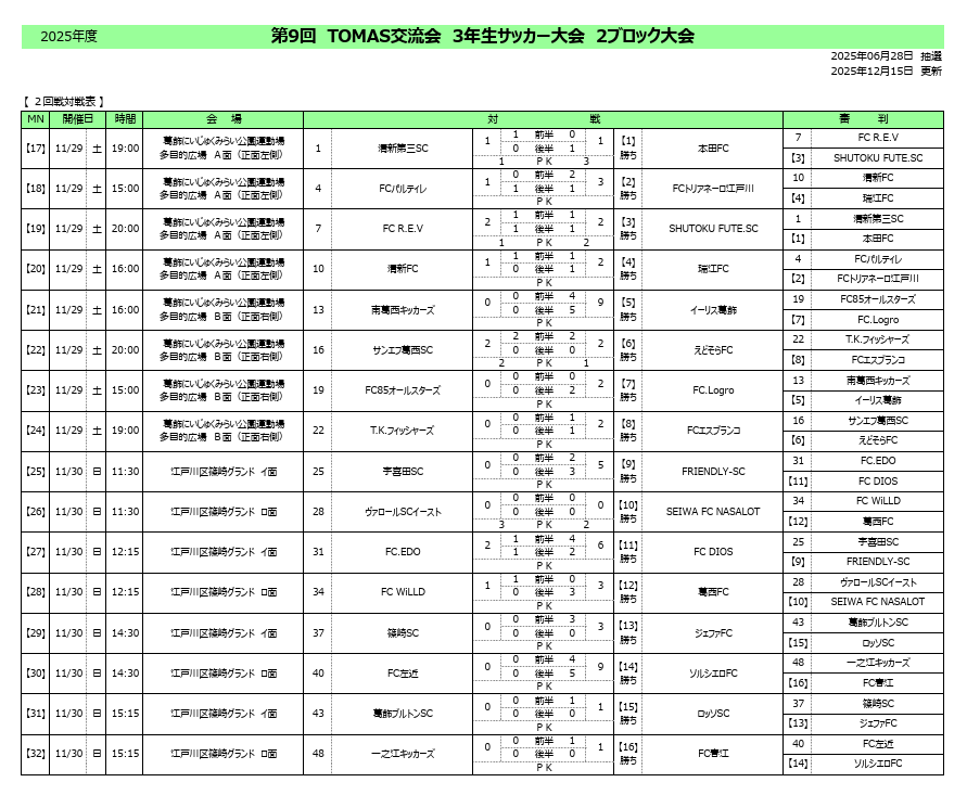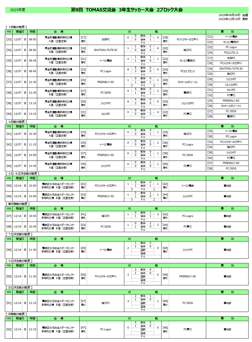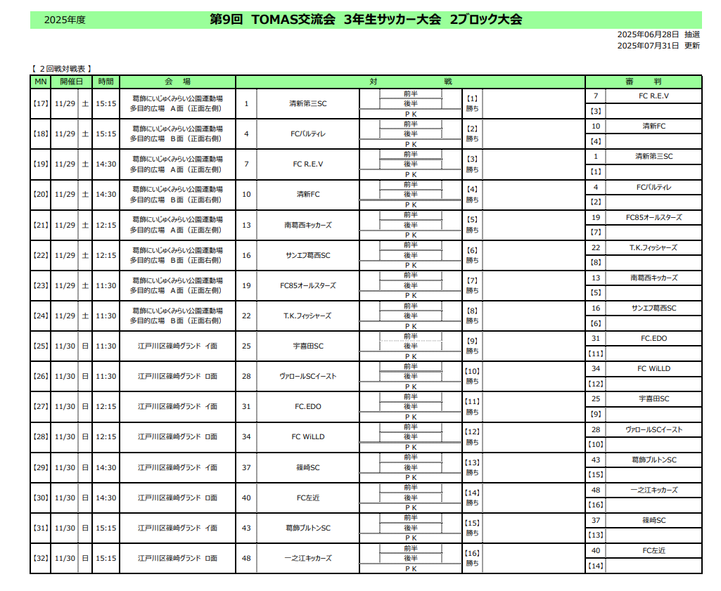 2025年度 第9回TOMAS東京都U-9サッカー交流大会 第2ブロック