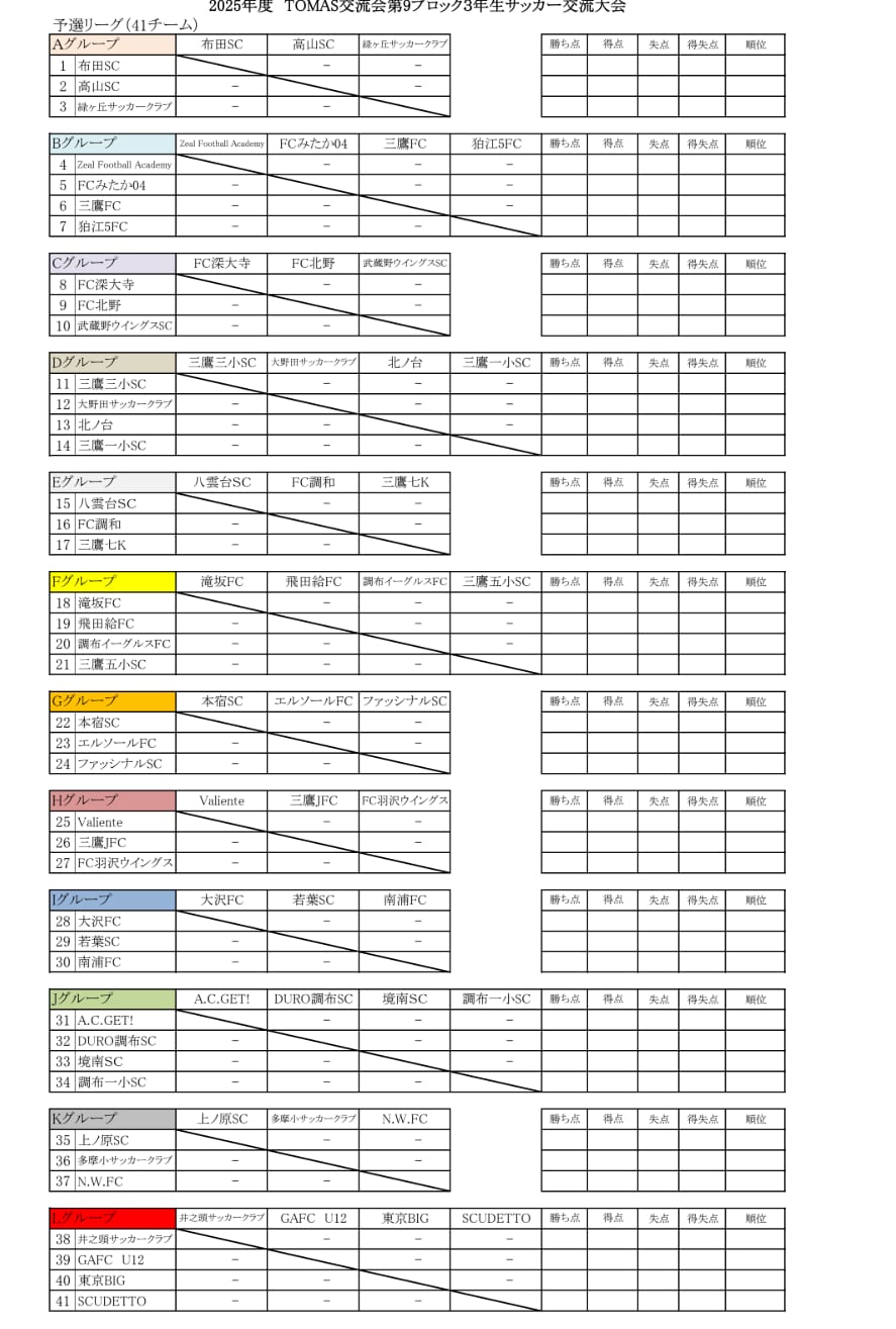 2025年度 第9回TOMAS東京都U-9サッカー交流大会 第9ブロック