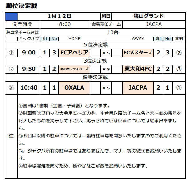 試合時間は15分ハーフ(15分+5分+15分)、4チームリーグは12分ハーフ(12分+5分+12分)。