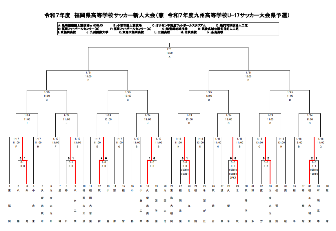 (1) 本大会の1位・2位は、本大会の1位は、2月14日~17日に宮崎県で開催される第47回九州高等学校U-17サッカー大会に福岡県代表とし出場する権利を得る。