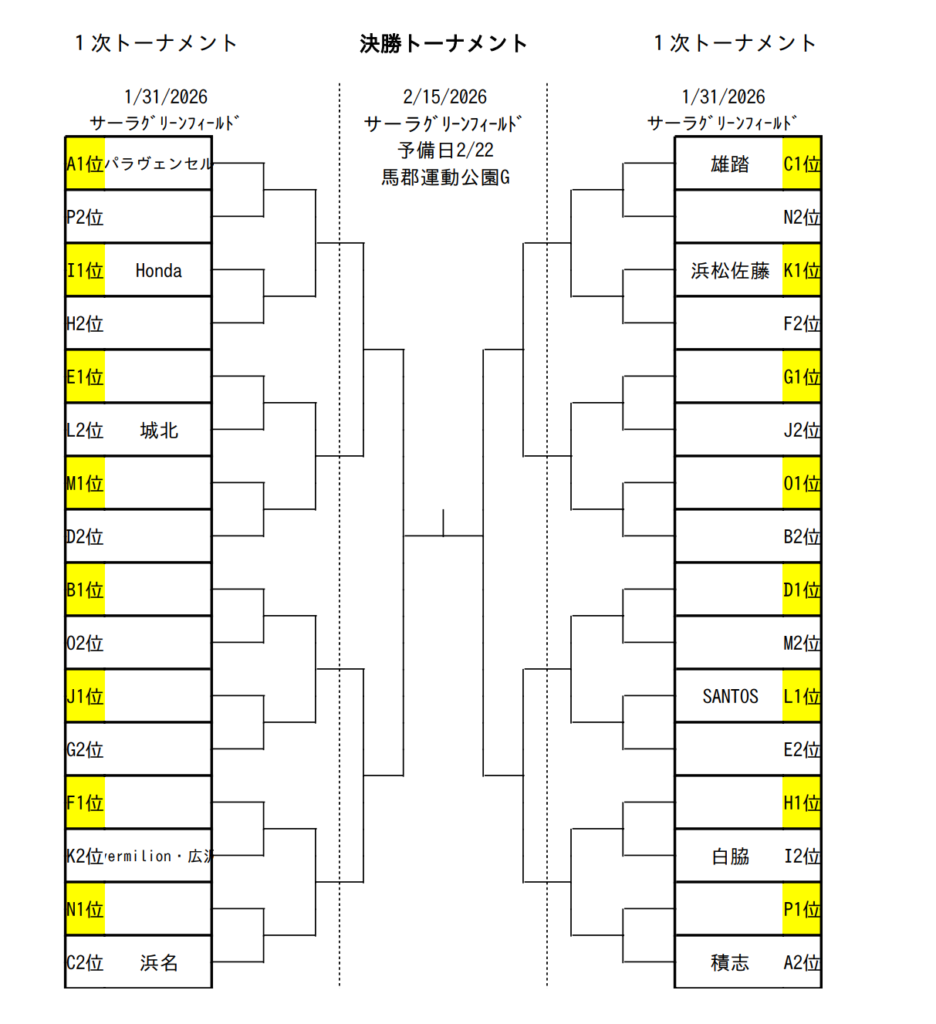② 1次リーグ戦シードチームをもうけます。(サーラカップを対象)上位2チームが決勝トーナメントに上がる。