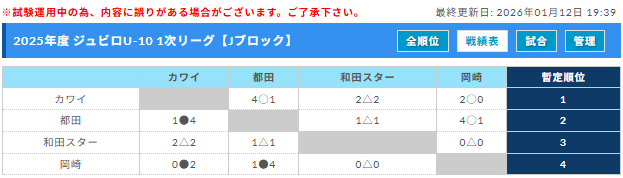 1位:カワイ、2位:都田、3位:和田スター、4位:岡崎
